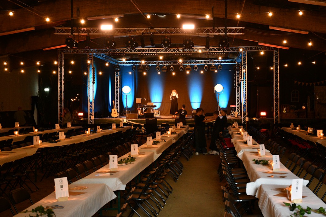 Die Reithalle, hergerichtet und geschmückt wie ein Festspielort