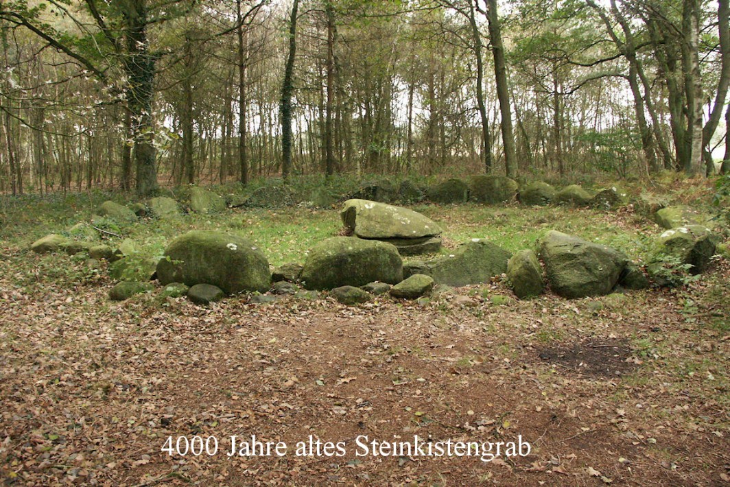 Wer den Vorgeschichtspfad erwandert hat und ausreichend beweglich ist, sollte nicht versäumen, das Steinkistengrab zu besuchen. Noch um 1900 lag es in einer Heidelandschaft unter einem mächtigen Grabhügel verborgen und bildete den Mittelpunkt eines großen Gräberfeldes, das zu weiten Teilen heute zerstört ist.