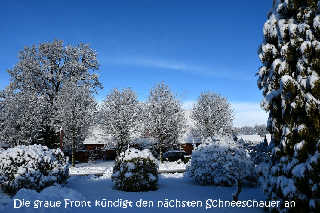 Das neue Jahr begann mit einem heftigen Wintereinbruch und einer Unmenge an Schnee, wie man das hier seit Jahren nicht erlebt hat. Am 9ten toppte ein Schneesturm mit Ostwind das Wetter. Vielerorts blieben die öffentlichen Einrichtungen wie Schulen geschlossen.