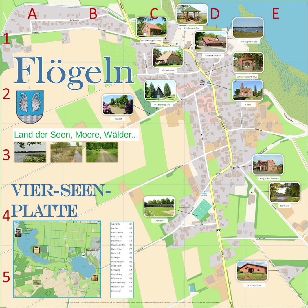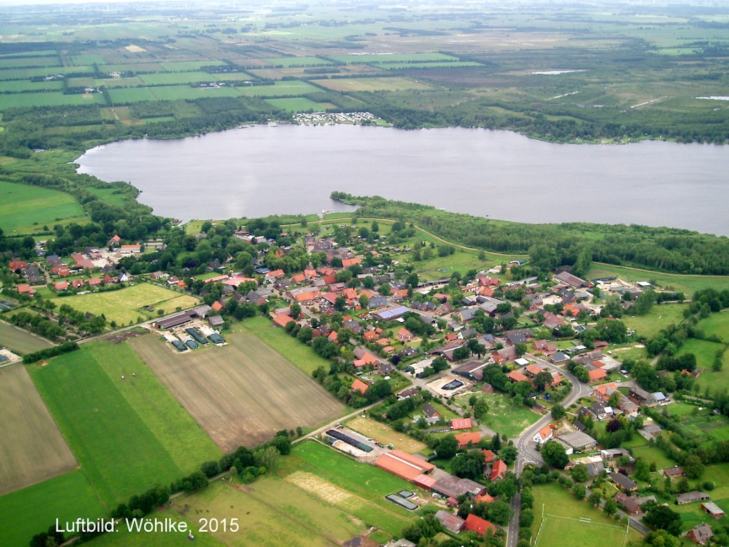 Am Rande des nach Osten zu den Seen und dem Moorgebiet und Wiesengelände flach abfallenden, trocknen Geestrückens erstreckt sich die 2,5 km lange Ortschaft. Die Kirche bildet wie zu alten Zeiten den geographischen Mittelpunkt. In jüngerer Zeit dehnte sich das Dorf hauptsächlich nach Nordwesten aus, wo Neubaugebiete entstanden.