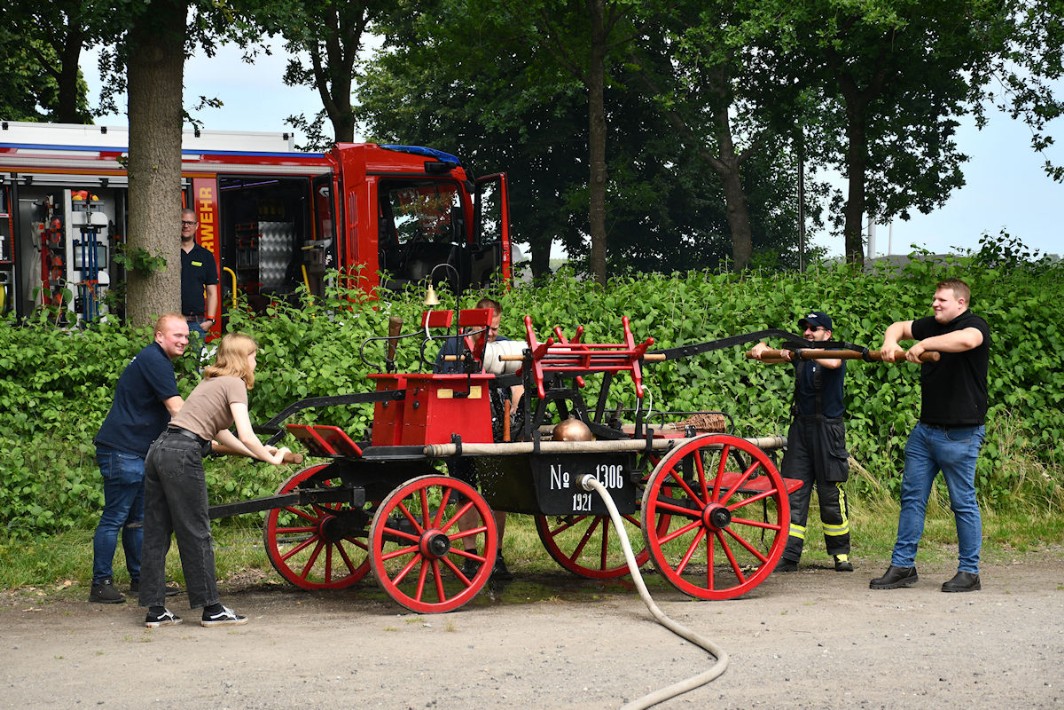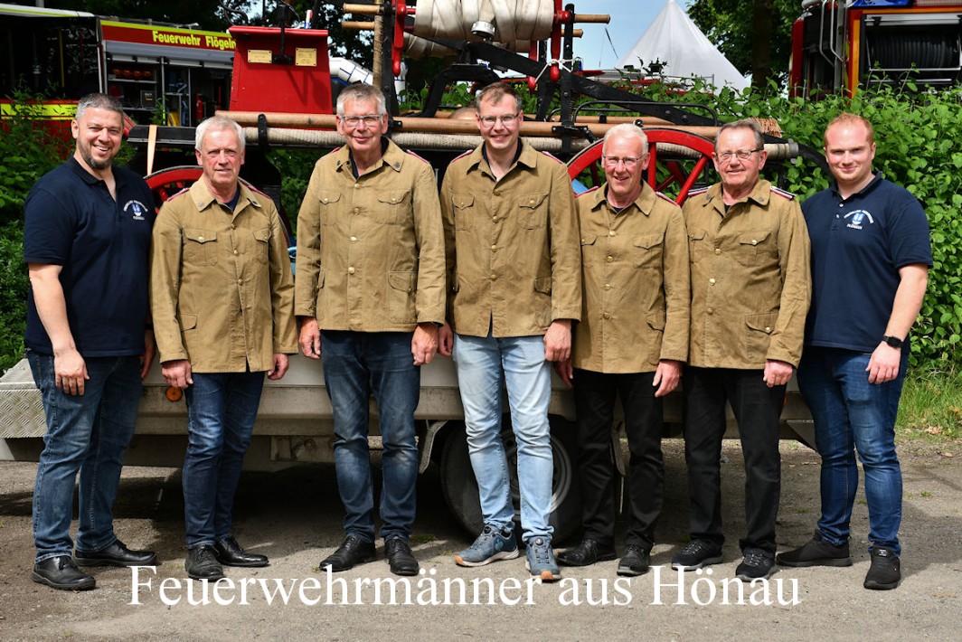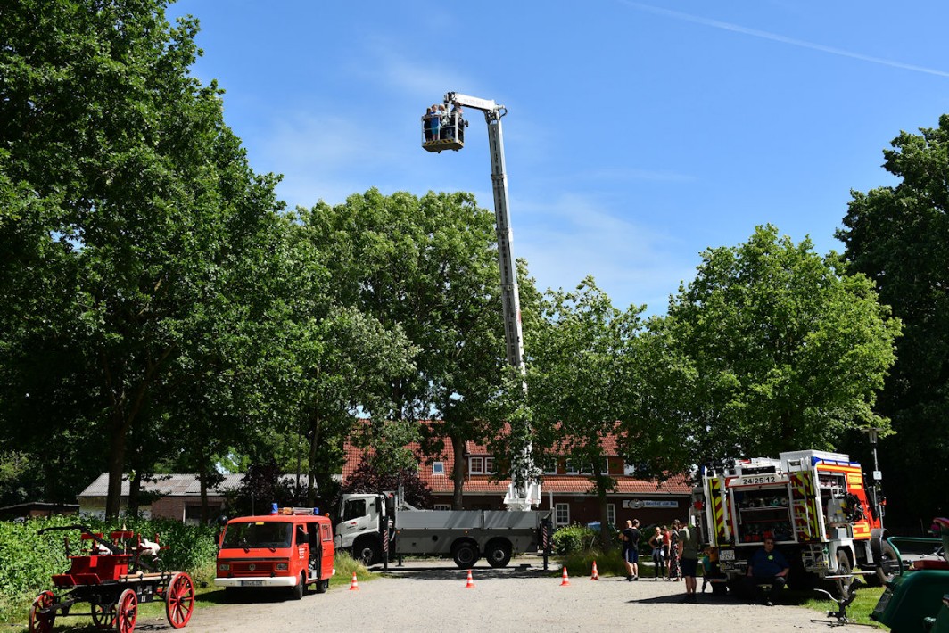 Eine extra zum Fest mit einem alten Feuerlöschfahrzeug aus Hönau bei Bremervörde angereiste Gruppe demonstrierte zur Freude der Besucher das Löschen von Bränden in alter Zeit.