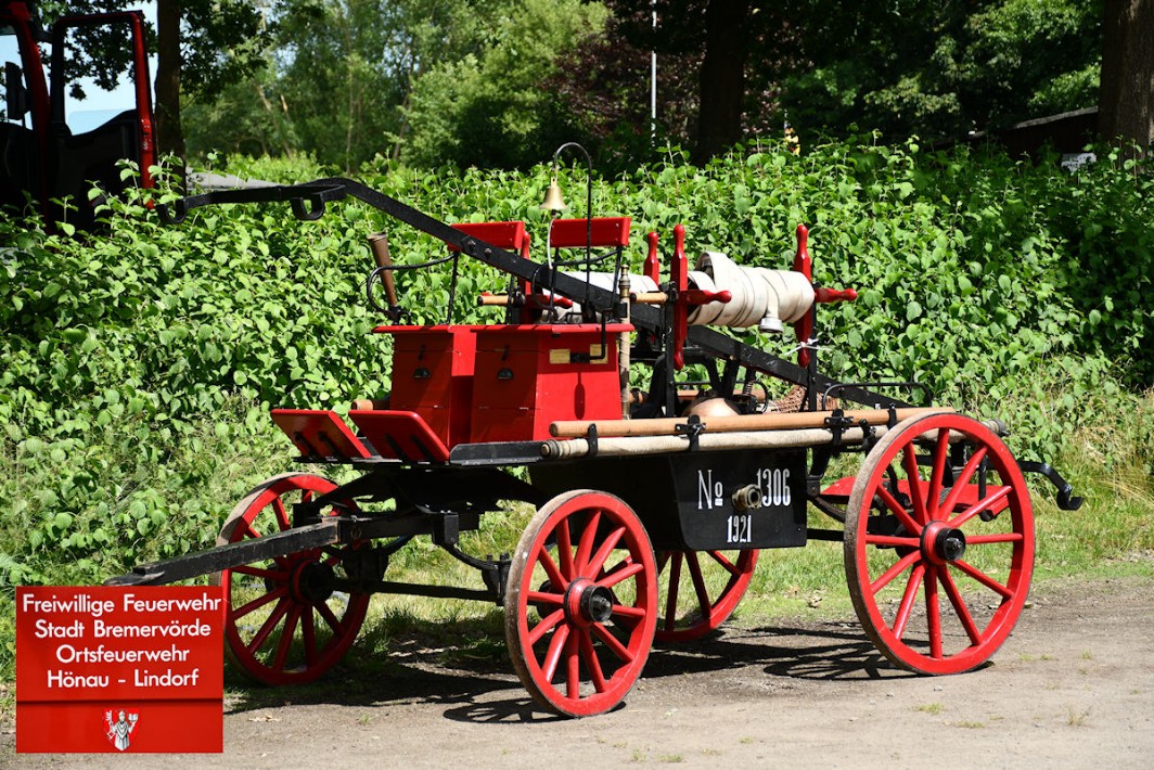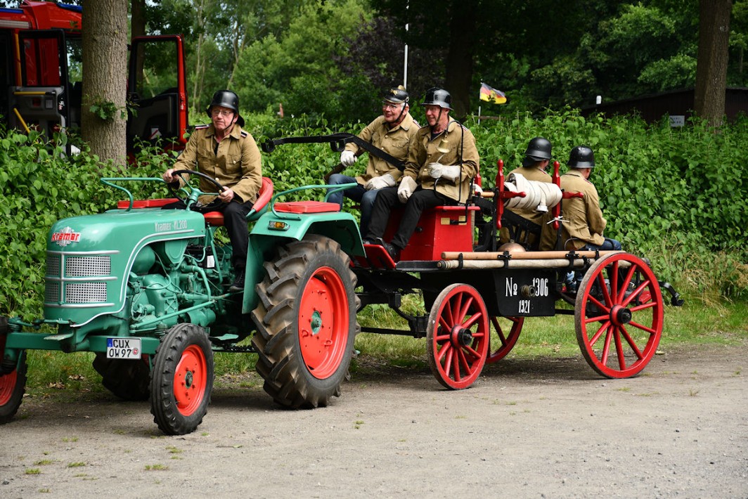 Eine extra zum Fest mit einem alten Feuerlöschfahrzeug aus Hönau bei Bremervörde angereiste Gruppe demonstrierte zur Freude der Besucher das Löschen von Bränden in alter Zeit.