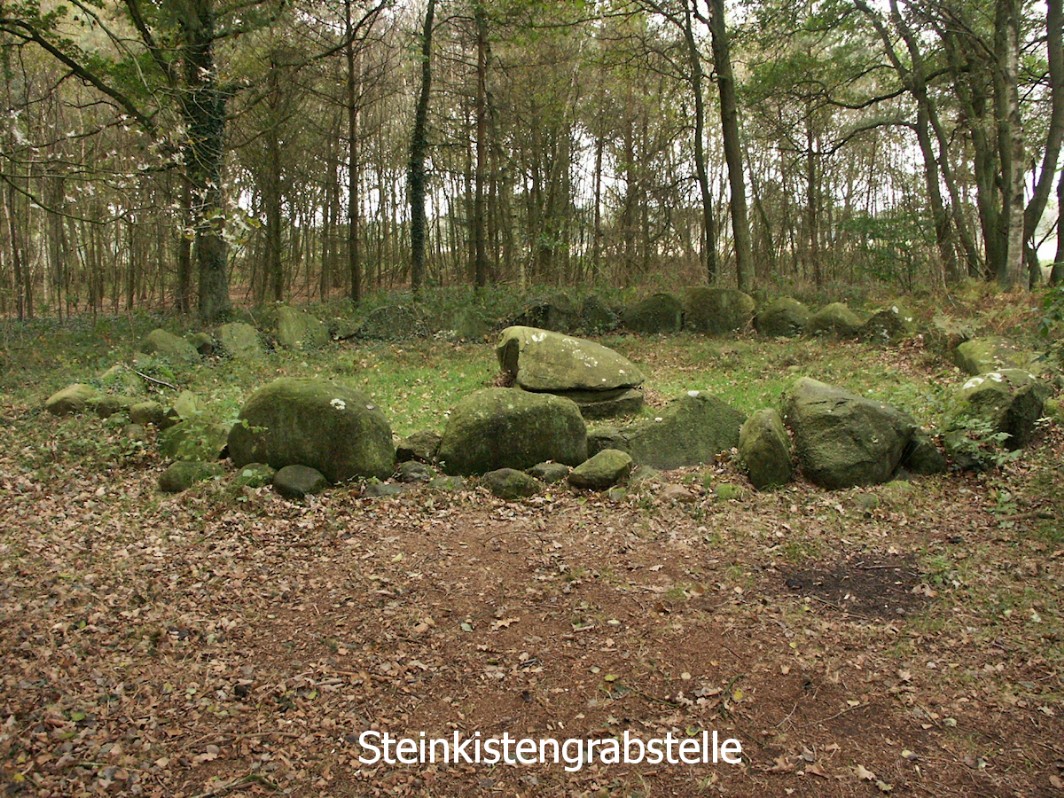 Wer den Vorgeschichtspfad erwandert hat, sollte nicht versäumen, das Steinkistengrab ein Stück außerhalb des Waldes zu besuchen.