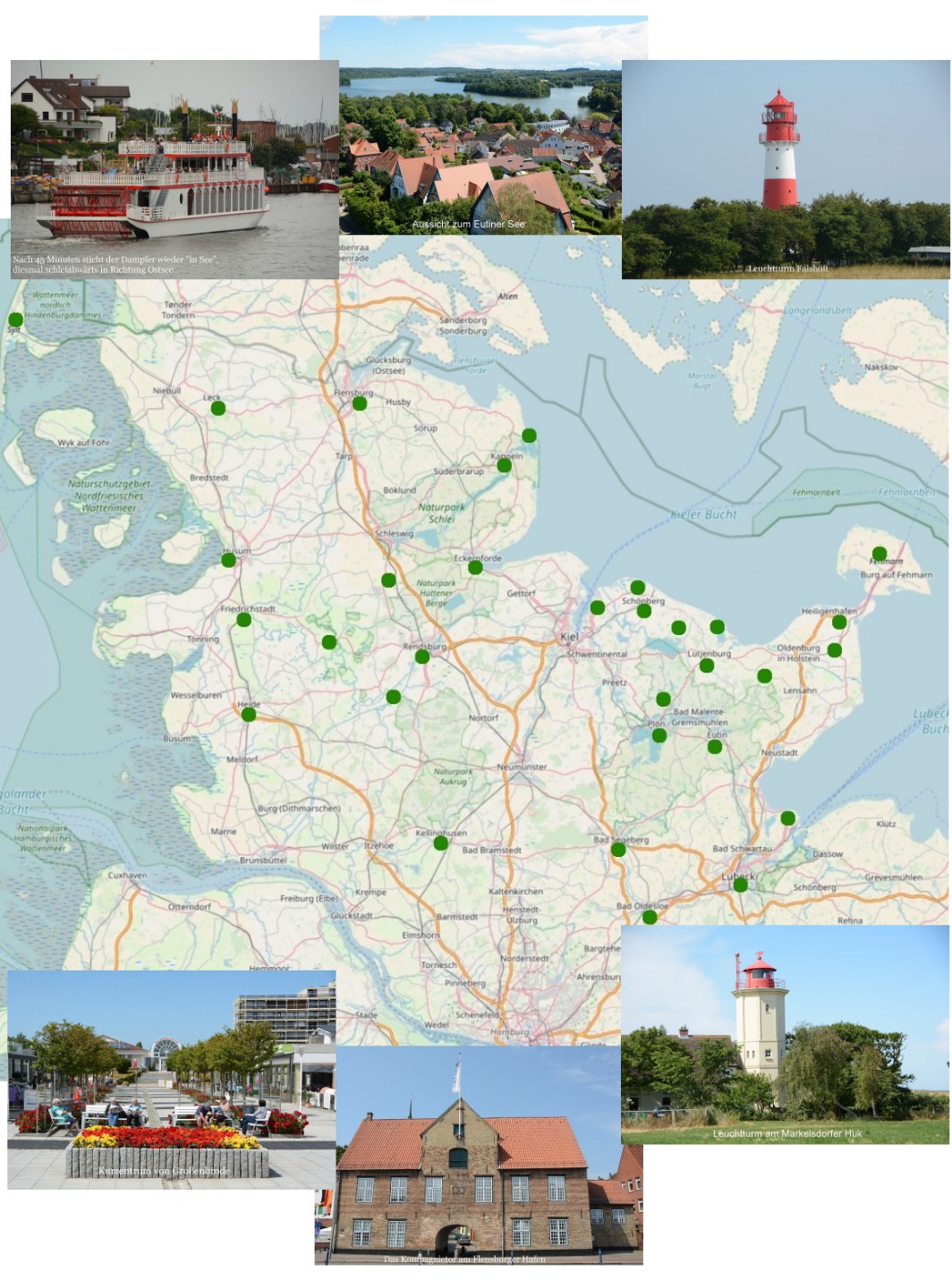 Schleswig-Holstein liegt zwischen der Nord- und Ostsee und ist das zweitkleinste deutsche Flächenland. Landeshauptstadt und zugleich größte Stadt ist Kiel; weitere große Städte sind Lübeck, Flensburg und Neumünster.